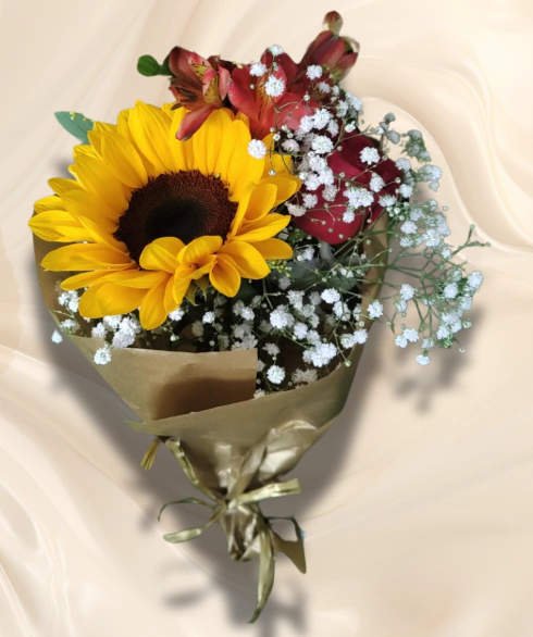 Arranjo com Girassol, Rosa Nacional e Astromélia S4202B